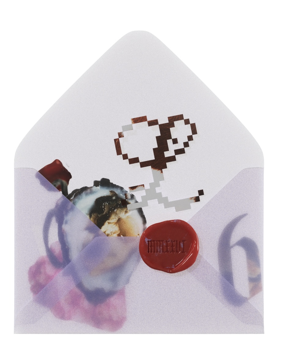 A series of graphic images and fragments move through the frame, appearing one after another like a message being sent. Photographic textures, collage, and colorful elements come together, forming a bright and graphic composition in motion.